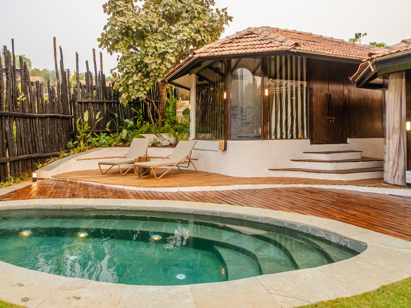 The cabin features a private plunge pool,